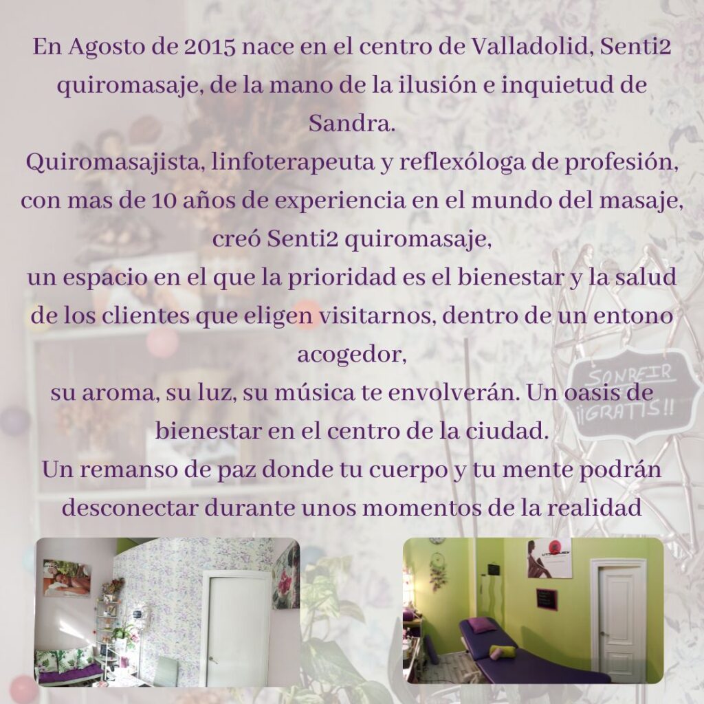 Profesionalidad y atención Excelente. Sandra es una masajista estupenda, te orienta sobre lo que mejor puede ayudarte. Llevo haciendo maderoterapia desde hace años y ha sido el único lugar en el que he notado mejoría después de muchos tratamientos. El drenaje es muy bueno y sus tratamientos de reflexología son increíbles.